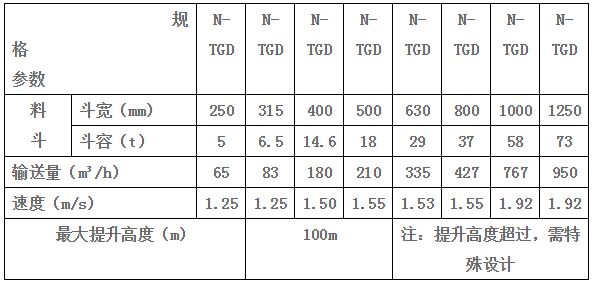 TGD型膠帶斗式提升機(jī)技術(shù)規(guī)格參數(shù):
